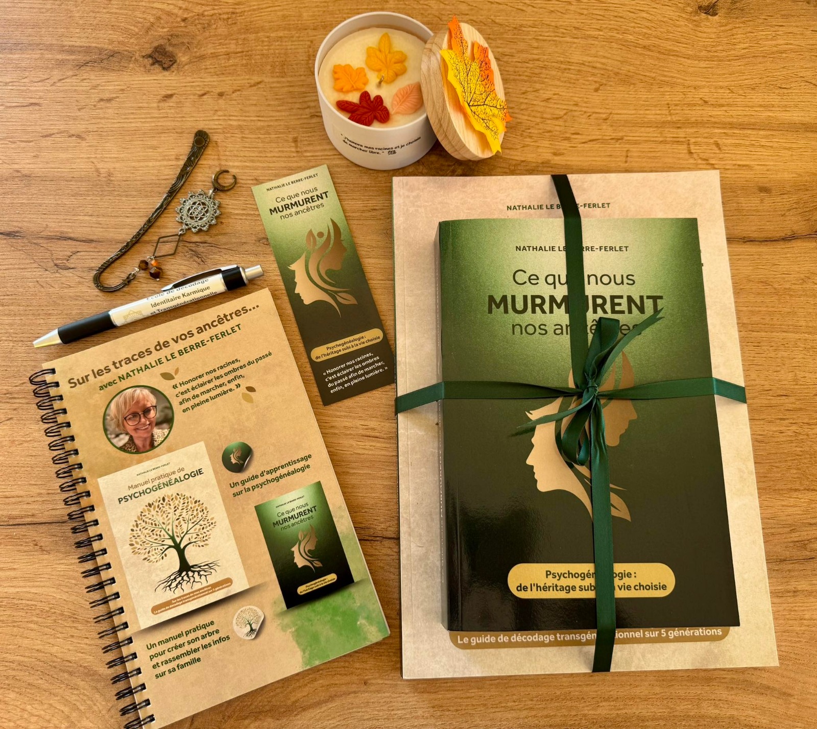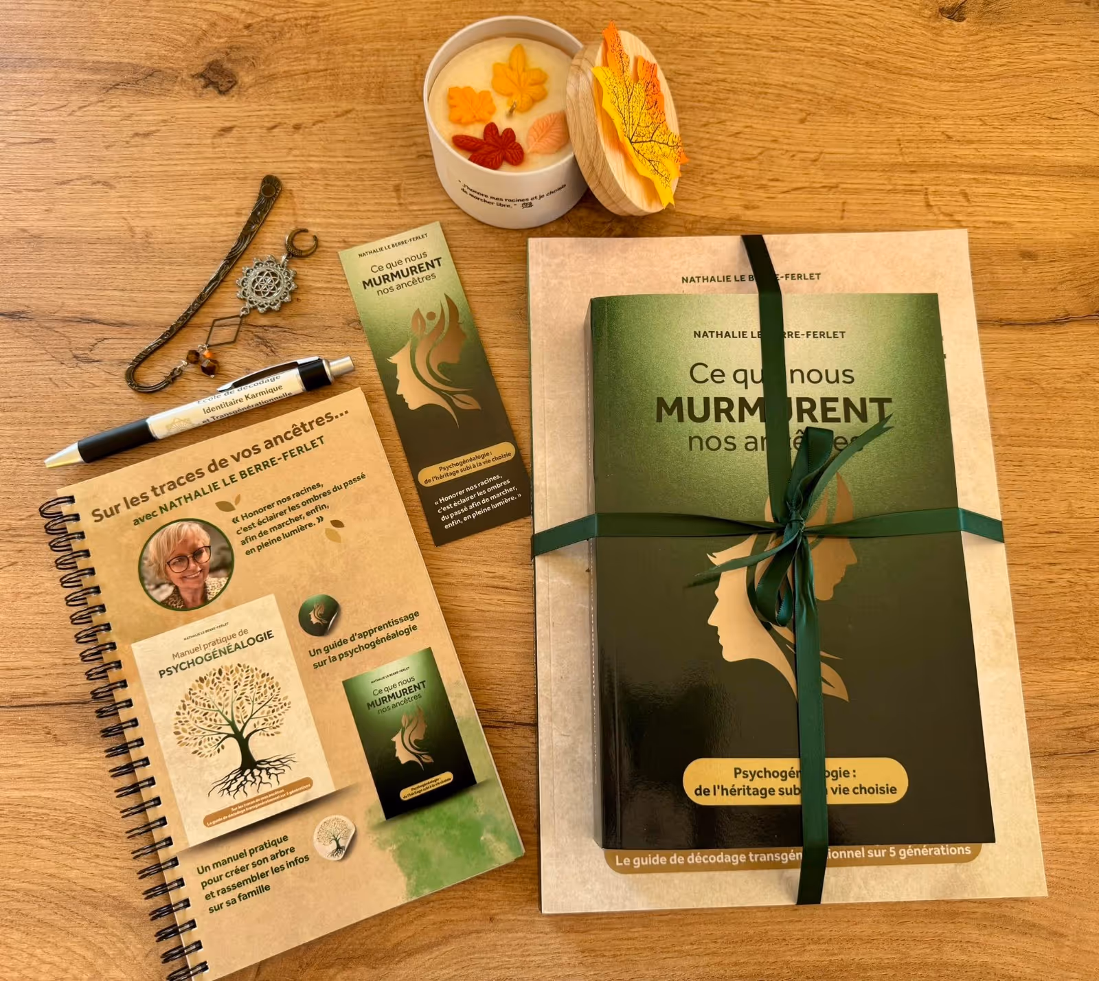 J’ai créé la box de libération transgénérationnelle, pensée comme un véritable rituel : un espace pour te reconnecter à ton histoire, honorer ce qui a été, et choisir en conscience ce que tu souhaites transformer et transmettre. Chaque élément a été conçu avec intention, pour t’offrir un temps pour toi, hors du bruit, au cœur du sens.